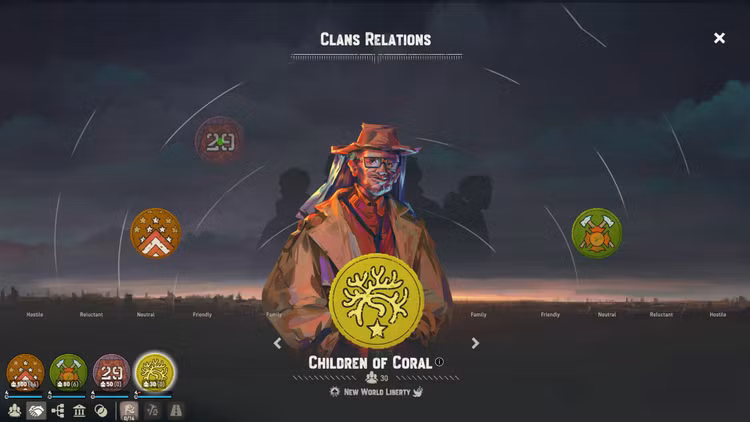 Society is only as good as its laws; it is up to you to define them. Will you usher in a new utopian age of equality or will your future be a benevolent dictatorship? Not every group shares your vision, and your decisions can have a profound impact on the future of your settlement. A common goal will make your society more productive than one that is at odds with itself; you must define and choose your legal development and which path to follow on the Tree of Law, but – as with all things – there are always consequences.