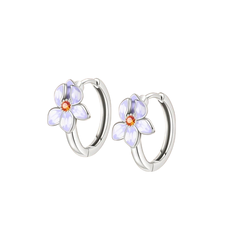 Flower Earrings Made of Sterling Silver 925 for Women Violet Motifs Ideal for Weddings, Engagements, Parties and Everyday Wear