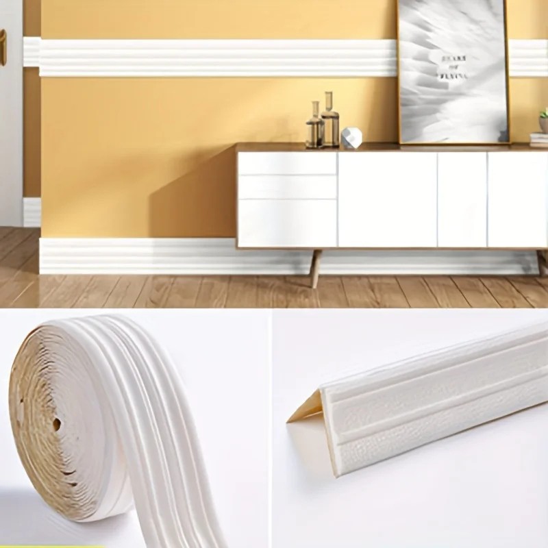 The foam construction helps protect walls from impacts, scratches, or scuffs. The strip also enhances the overall appearance of the room and can serve as a modern decorative element. The flexible material easily adapts to various types of surfaces and allows for simple trimming as needed. It is suitable for living rooms, children's rooms, bedrooms, and offices.
