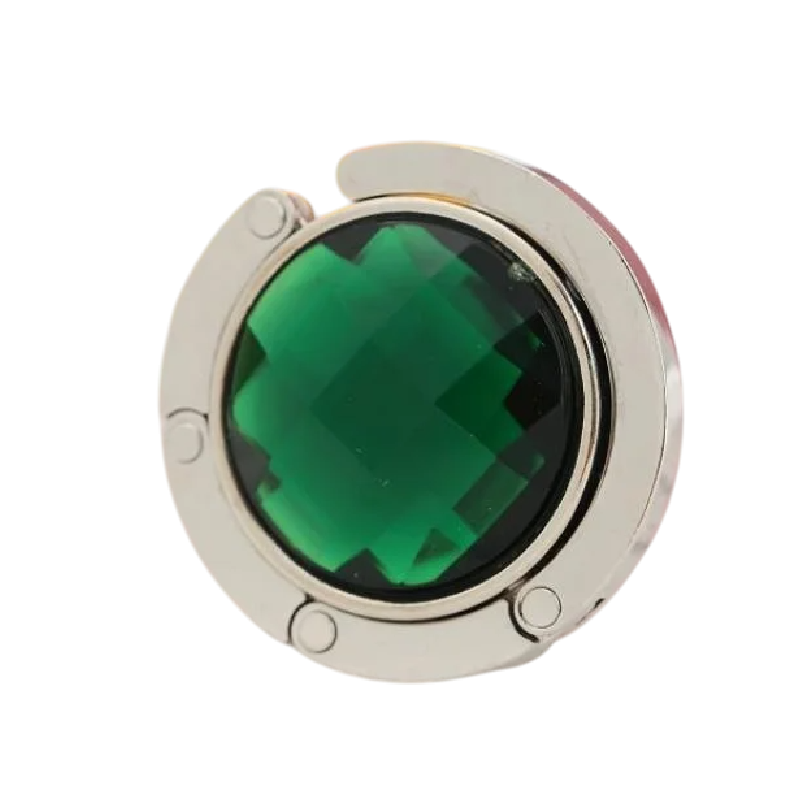 Elegant and practical bag hook with artificial gemstone keeps your handbag clean and within reach in cafés, restaurants, and offices. Full description
