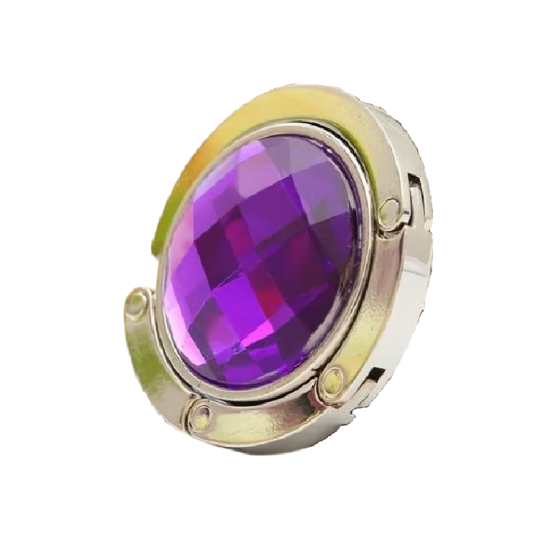 Ensure cleanliness, style, and practicality with this elegant foldable bag hook featuring an artificial gemstone. A practical accessory that easily fits into any handbag, it is ideal for everyday use in cafés, restaurants, offices, and while travelling. Simply unfold the hook and hang it over the edge of the table, protecting your handbag from dirt on the floor. With its shiny artificial gemstone, it also looks luxurious and elegant. With a diameter of 4.5 cm, it is compact yet sturdy and stable.