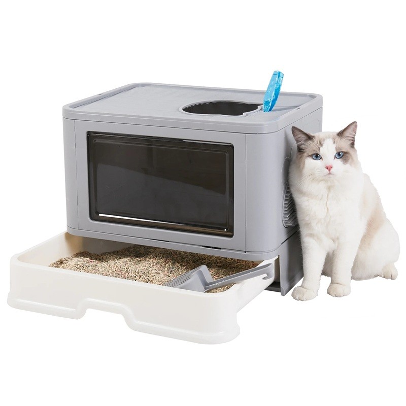 Home page Home page Pet Supplies Cat Supplies Cat Litter Boxes & Accessories Foldable Cat Litter Tray 50 x 38 x 37 cm Closed Plastic Litter Tray with Front Entrance and Top Exit Massage Scoop Cat Privacy