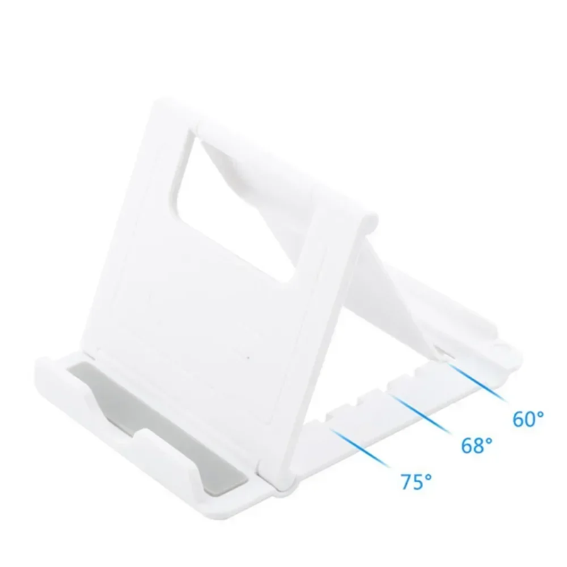 Practical foldable mobile stand with adjustable angle. Compact design ideal for a desk, kitchen, or travel. Full description