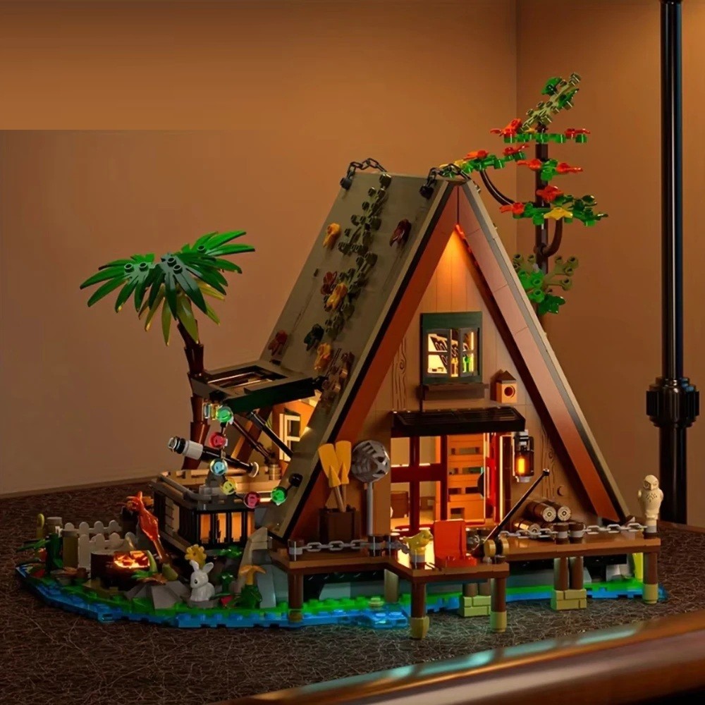Forest Triangular Cabin Building Set 24 x 21 x 21 cm Detailed Model of a Log Cabin by the Lake with Terrace and Garden Creative Decorative Set with 1486 Pieces