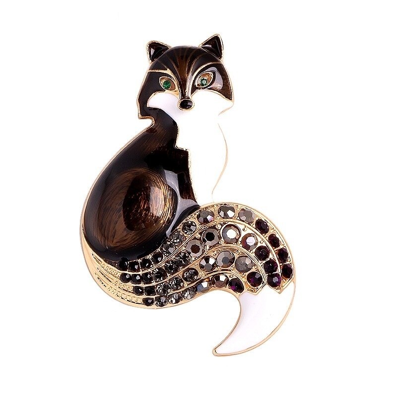 The fox brooch measures 5.4 x 3.8 cm and is adorned with colourful stones. The light reflects off the stones, making the brooch sparkle beautifully. So don't hesitate and order your fox-themed brooch today!