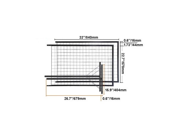 The metal grid wall display with stand is designed for showcasing goods, decorations, or various items. The structure includes two grid panels that can be used on both sides, creating a practical display area.