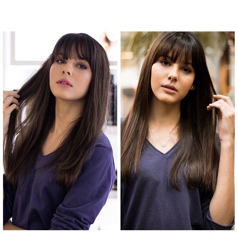 Made from high-quality synthetic fibres. The fringe hairpiece is a quick and easy way to achieve the perfect hairstyle without cutting your hair. It can be trimmed to suit your face shape. Holds its shape.