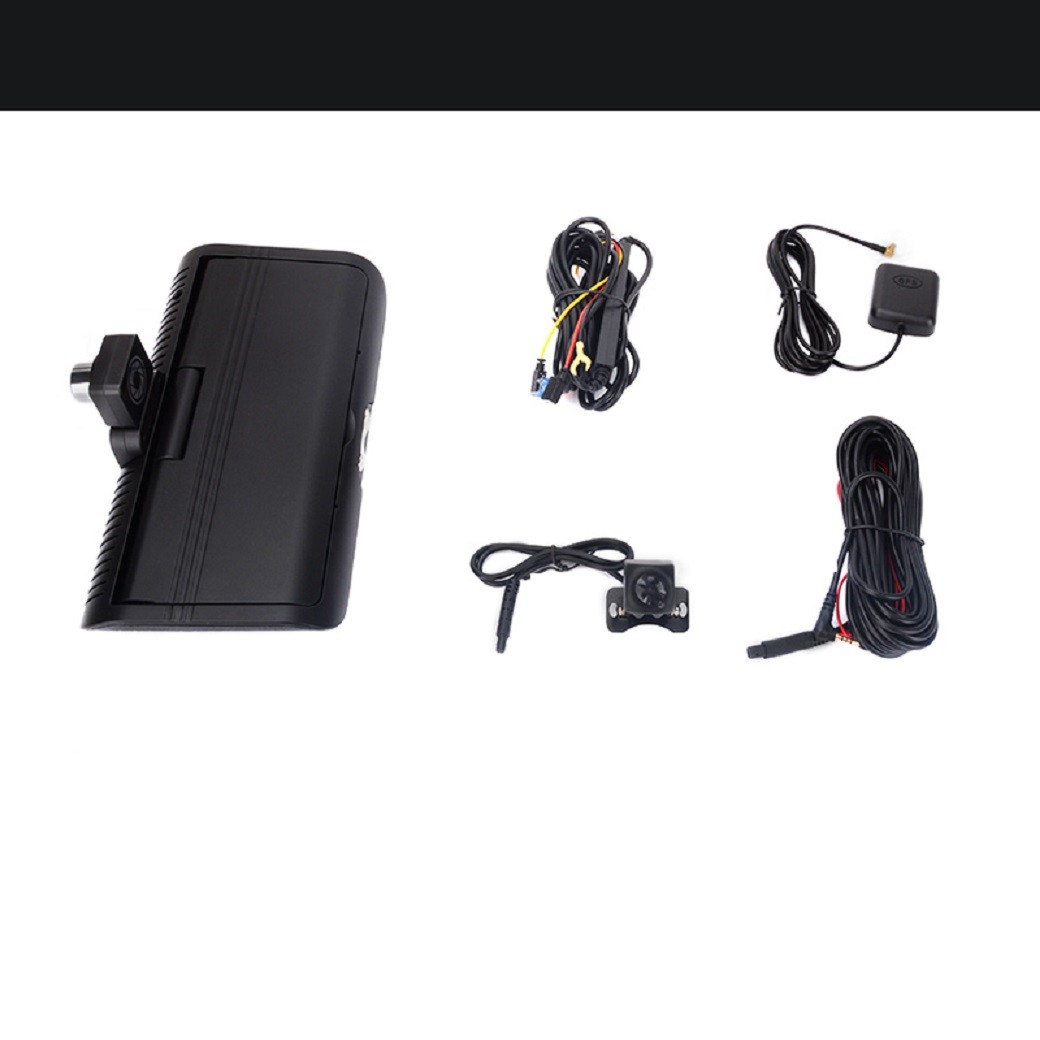 Package Contents: 1x dash camera, 1x charging cable, 1x GPS module, 1x rear camera, 1x cable for rear camera