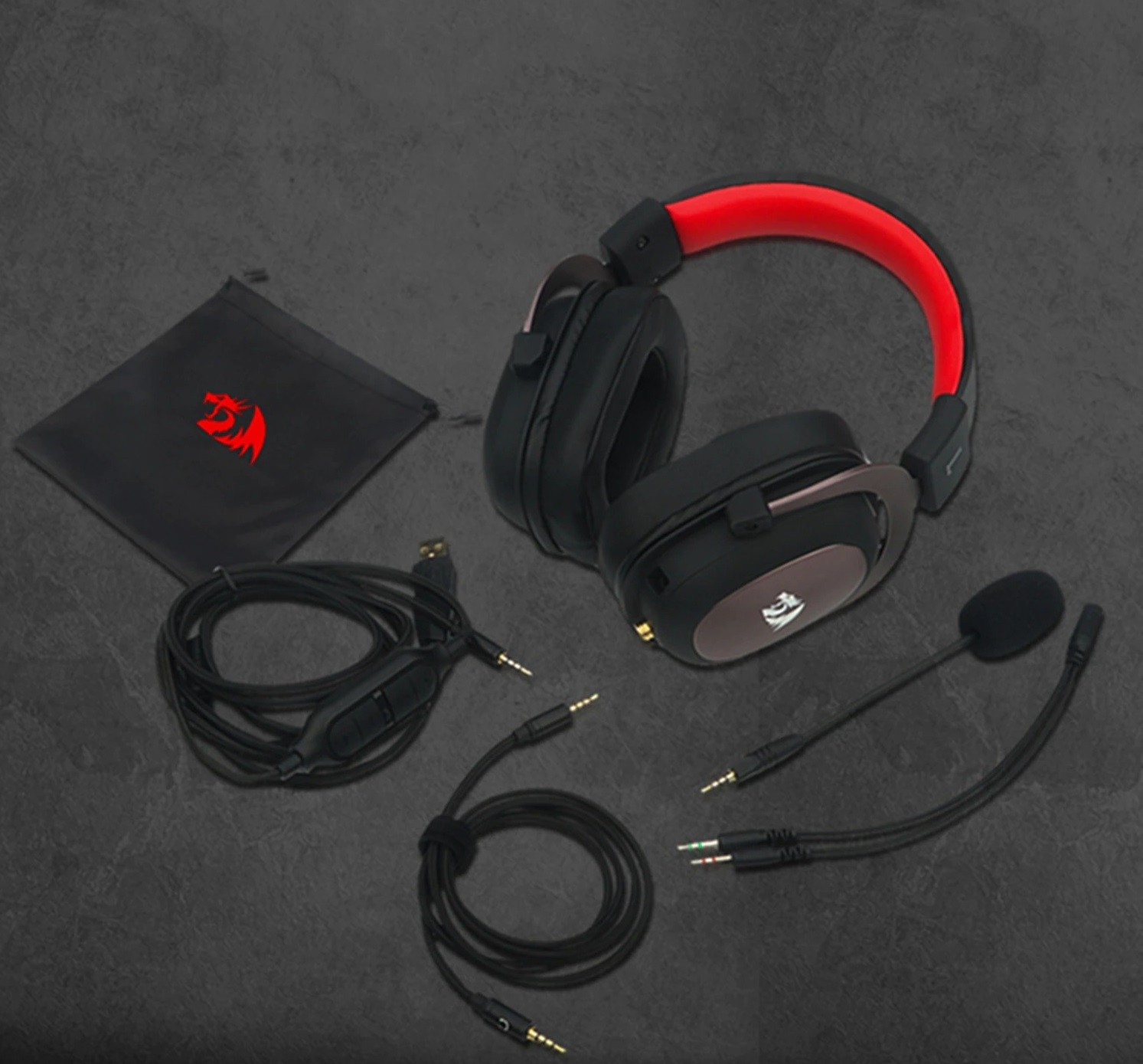 Package Contents: 1x headphones, 1x USB / 3.5 mm jack cable, 1x 3.5 mm jack cable, 1x microphone, 1x audio adapter