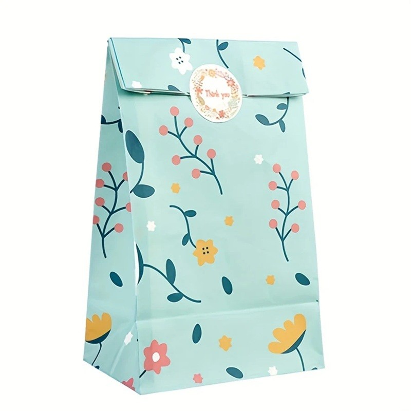 These paper gift bags with a plant pattern are the ideal choice for packaging sweets, biscuits, small gifts or baked goods. Made from sturdy kraft paper, they provide an eco-friendly, durable, and elegant solution for any occasion. With universal dimensions of 12 × 8 × 22 cm, they are suitable for both home use and for . Each pack contains 12 bags in various colours and decorative stickers with a diameter of 3.5 cm, allowing for practical and aesthetic closure of the bag.