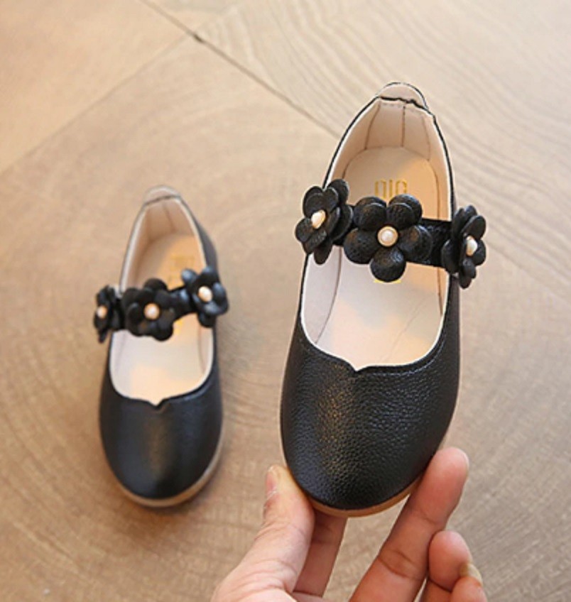 The ballerinas fasten with a Velcro strap that is decorated with flowers.