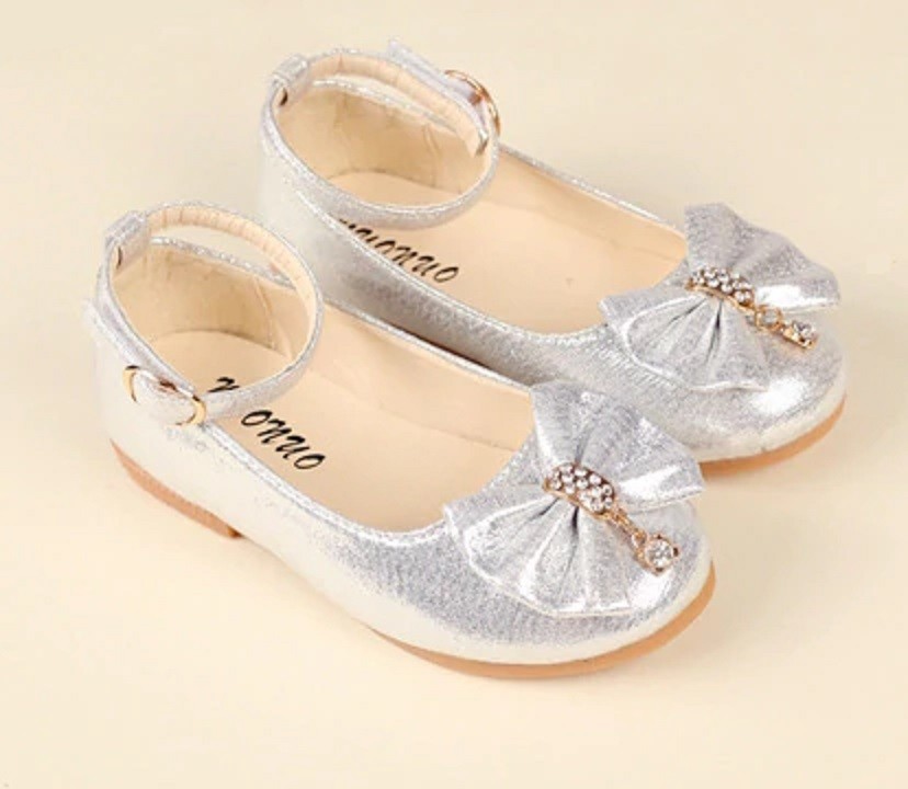 The ballerinas are sparkly and feature a bow adorned with gemstones on the front.