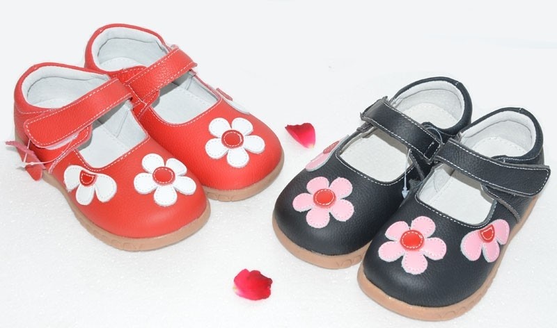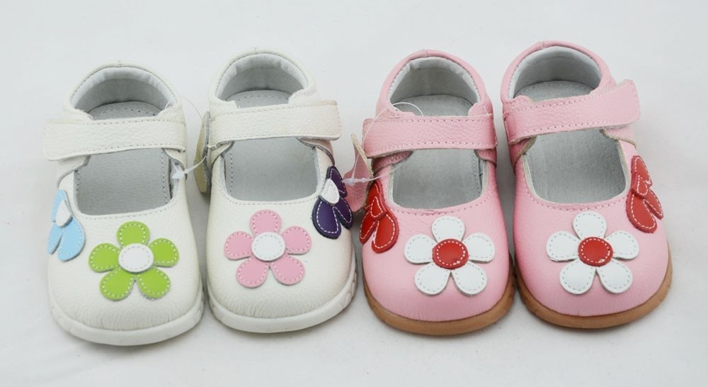 Girls' ballet pumps with flowers are suitable footwear for first steps.