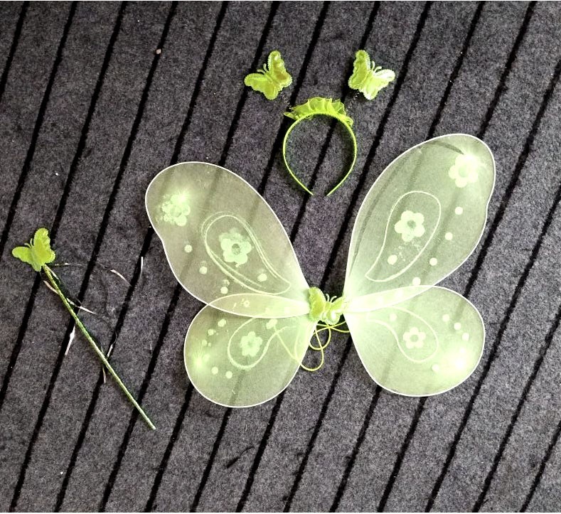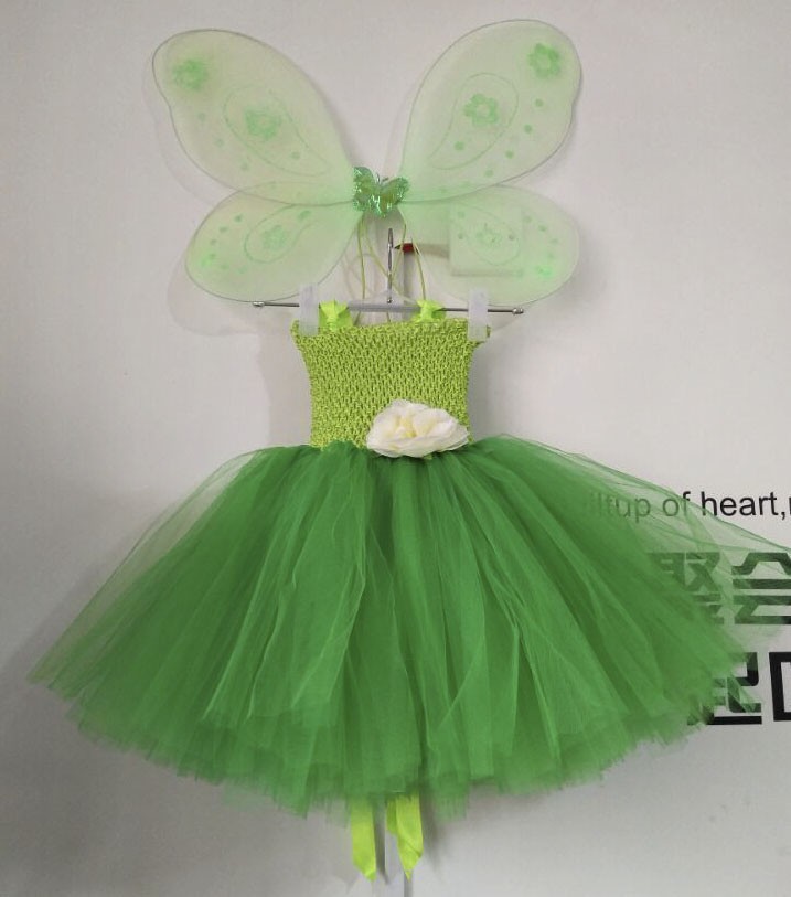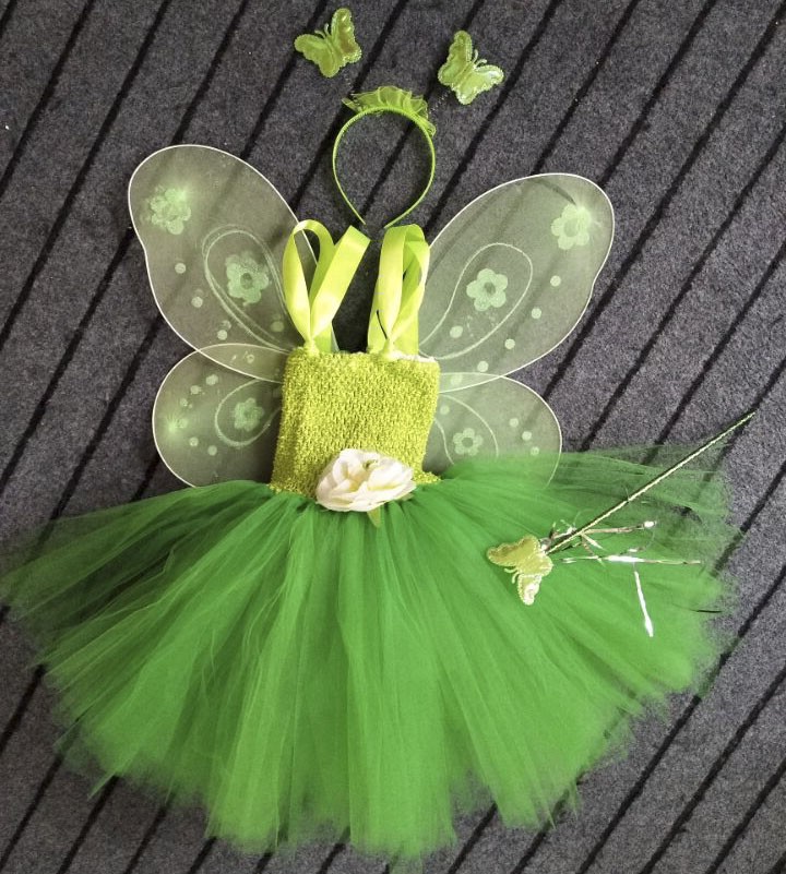 We have these beautiful dresses of this fairy for you, complete with wings, a wand, and a headband.