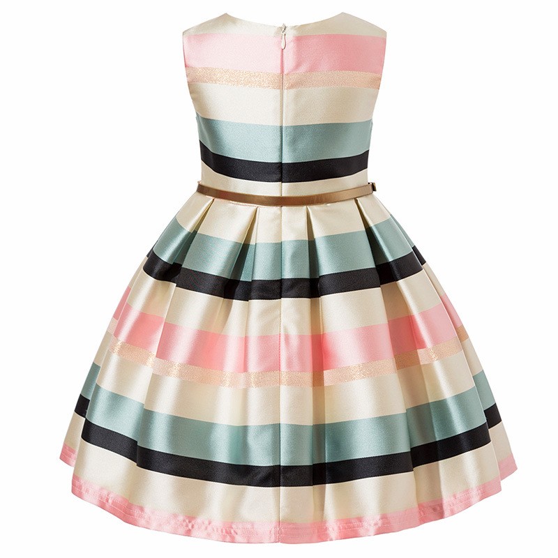 Girls' Evening Dress with Stripes and Belt J1288