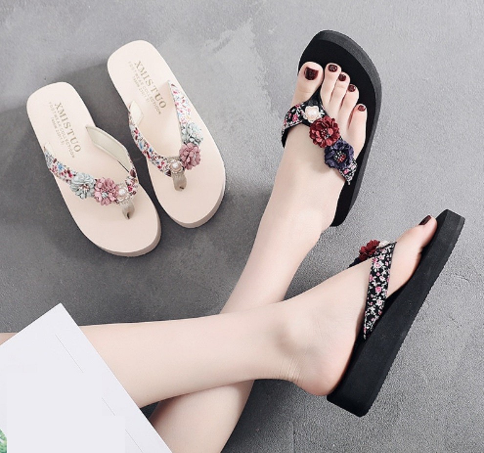 These girls' flip-flops adorned with flowers will be a fantastic fashion accessory for a summer outfit.