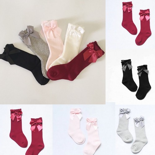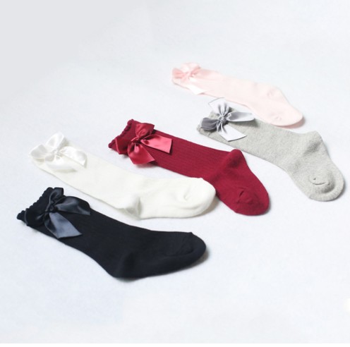 Girls' High Socks with Bow J891