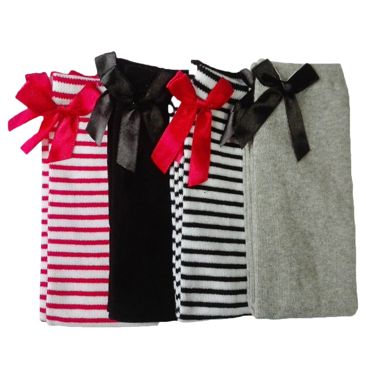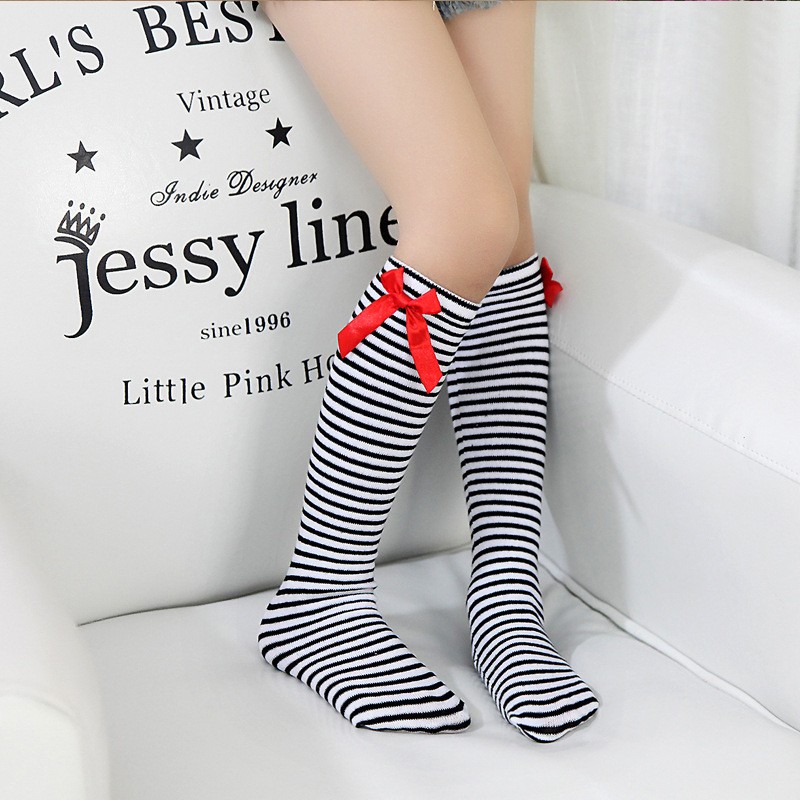 The knee-high socks are beautiful and the upper hem is adorned with a small bow on both sides.