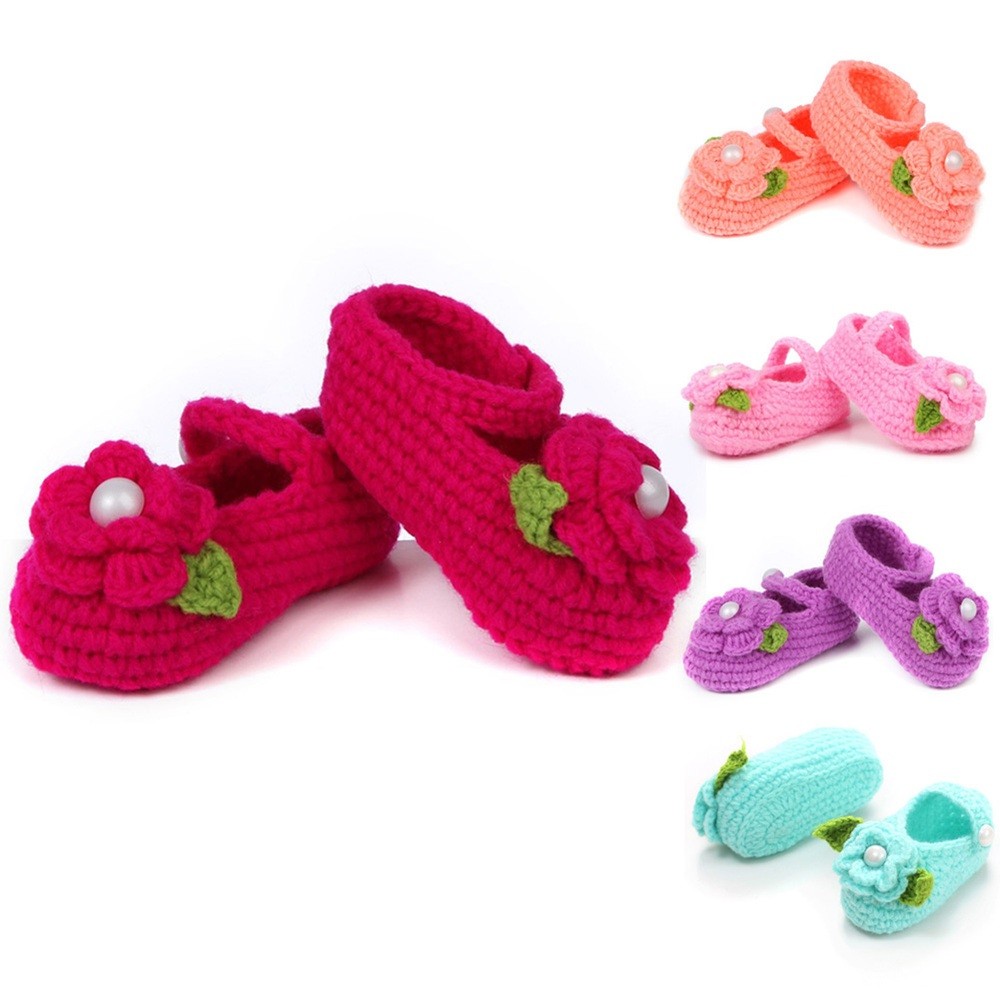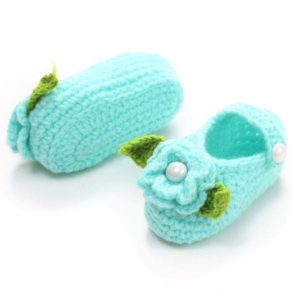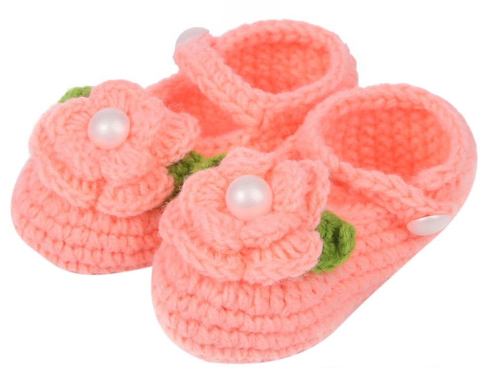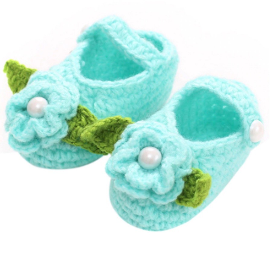 The booties are decorated with a flower and a pearl.