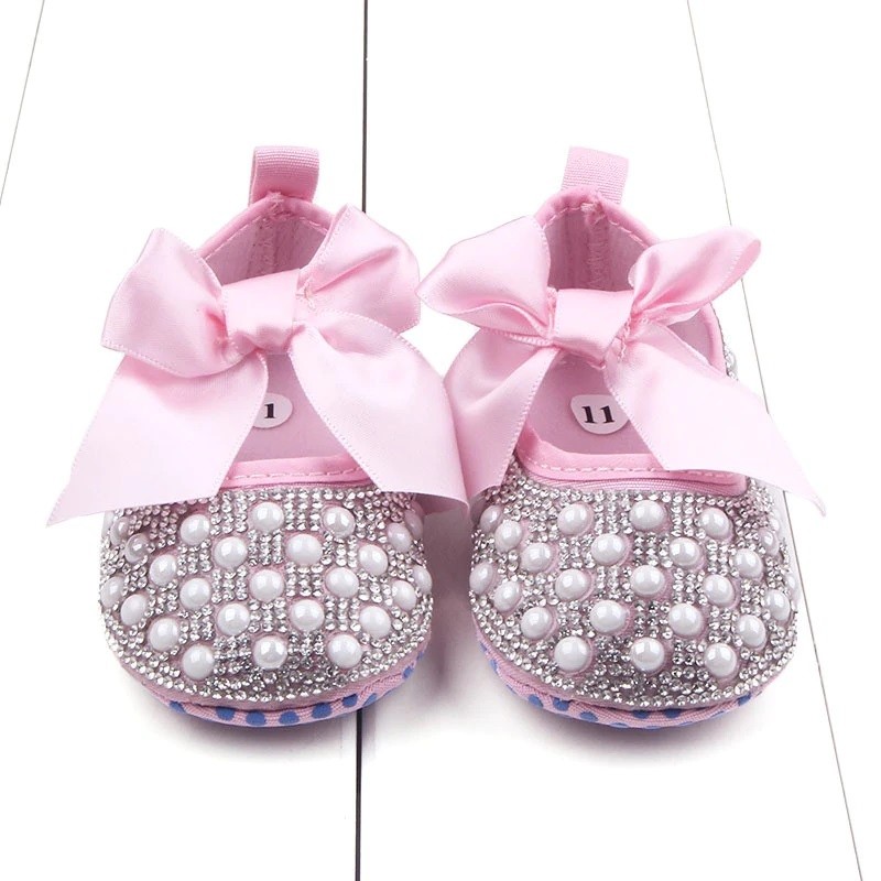 Girls' moccasins with stones and a bow around the ankle will be a practical and fashionable accessory for a summer outfit.