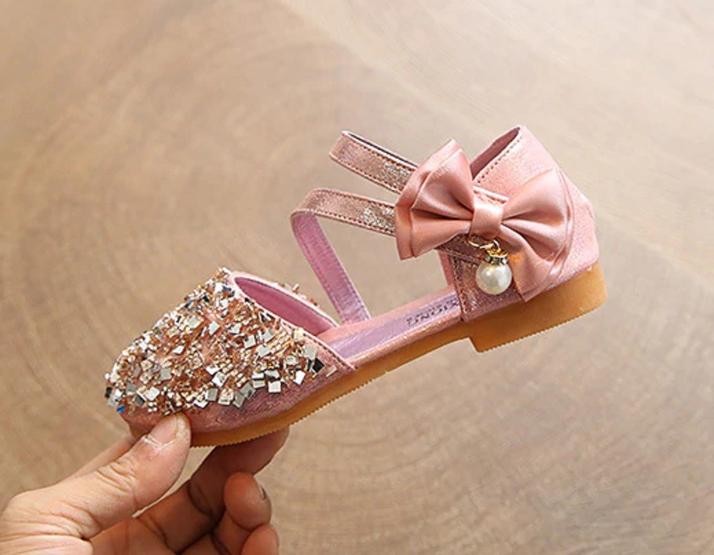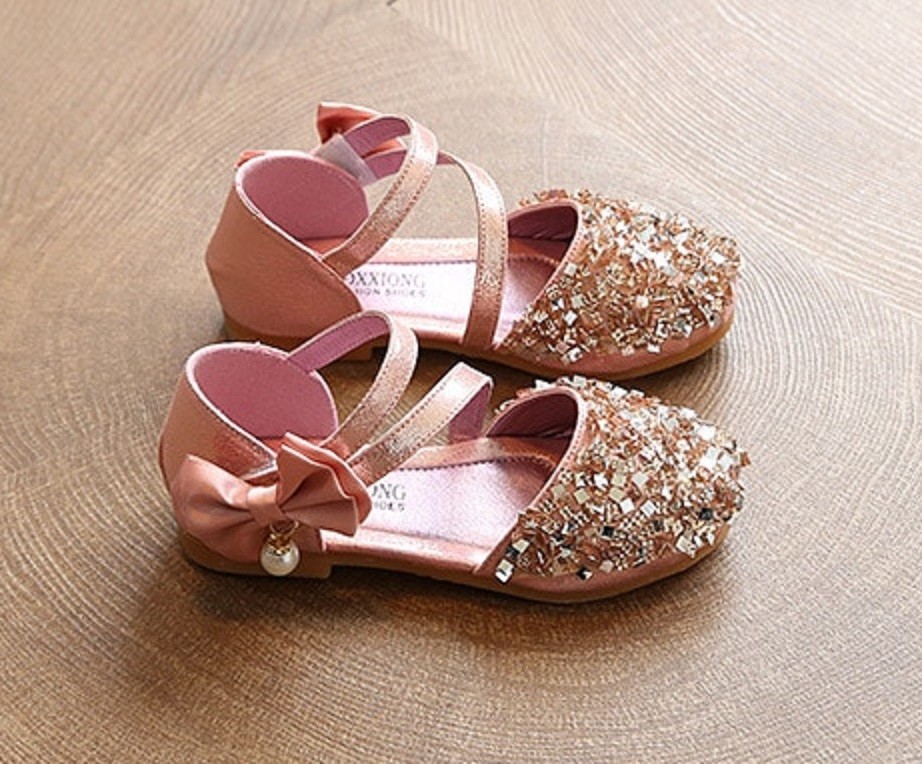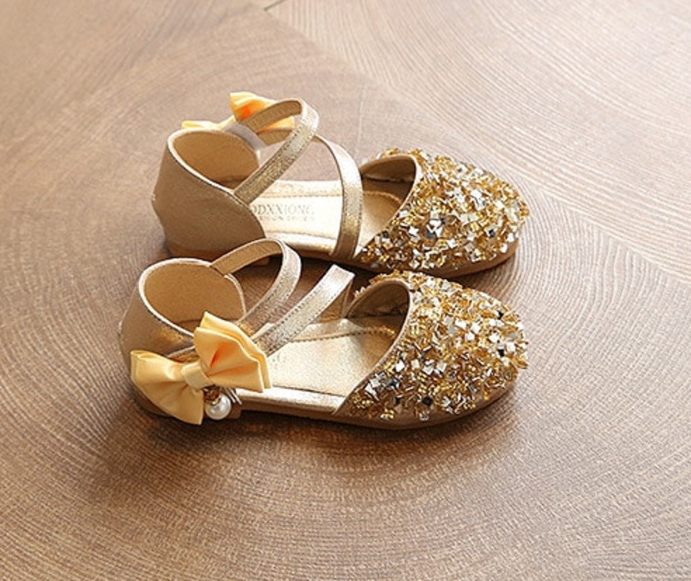 Your little girls will feel like princesses in these sandals. The sandals fasten with Velcro and are adorned with a bow and a pearl.