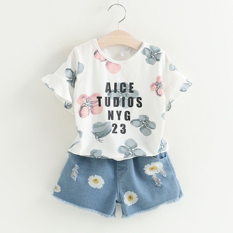 Girls' Set - T-Shirt and Shorts with Flowers J1272