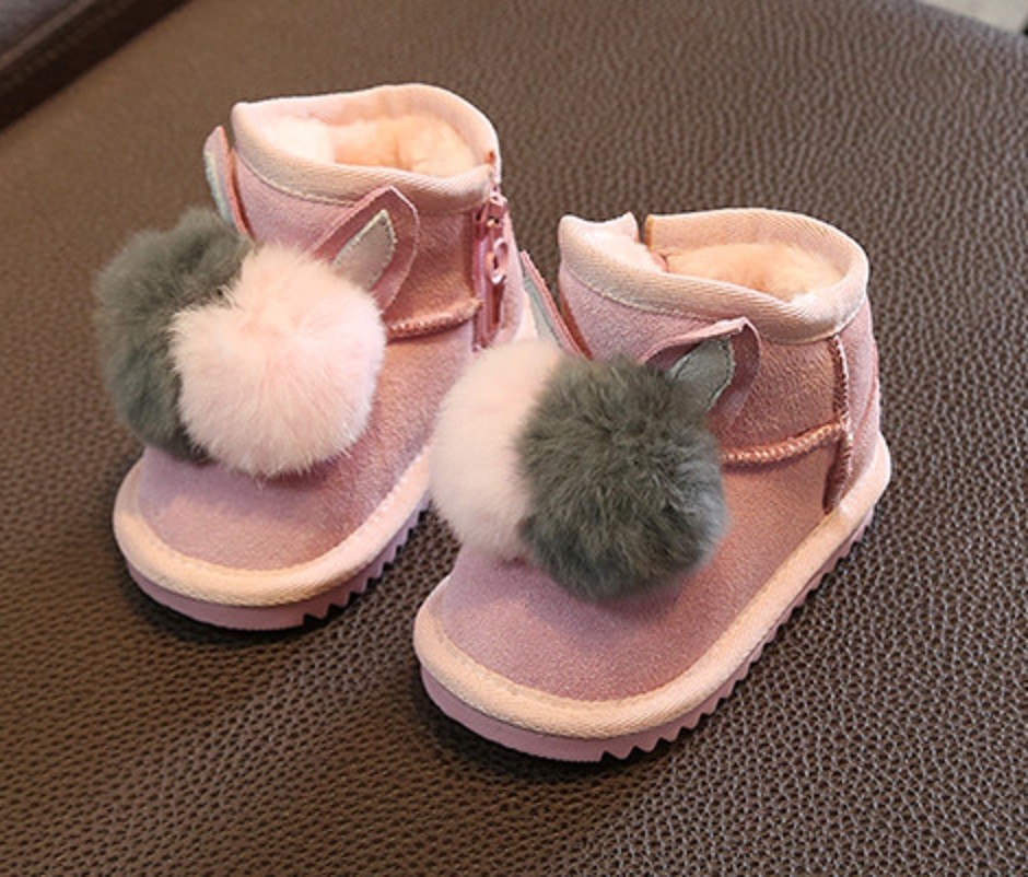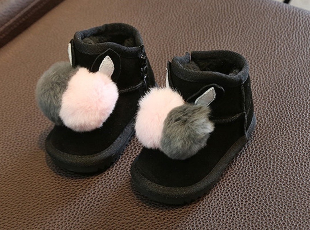 Girls' slippers adorned with pom poms and bunny ears are sure to be loved by little girls.