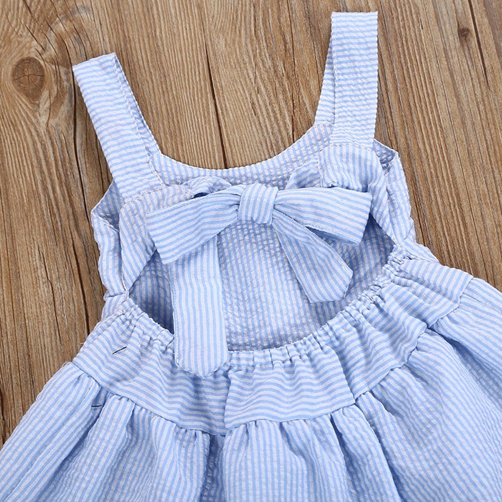 Dress your little girl in this beautiful striped dress with lace.