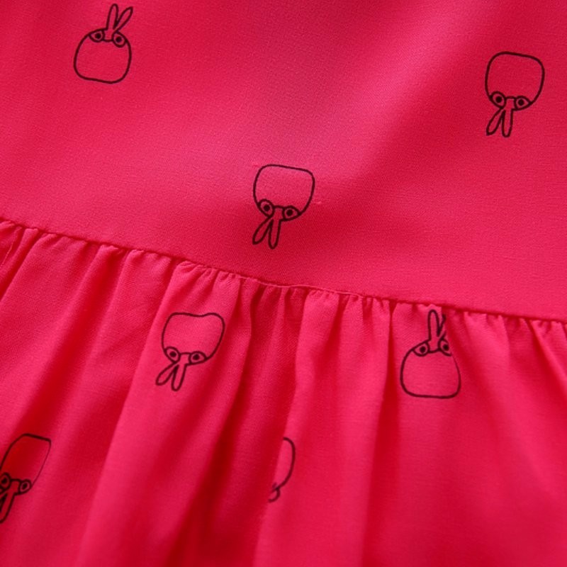 Girls' Summer Dress with Pattern - Dark Pink