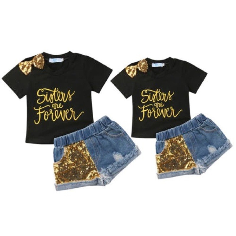 Girls' T-shirt and Denim Shorts