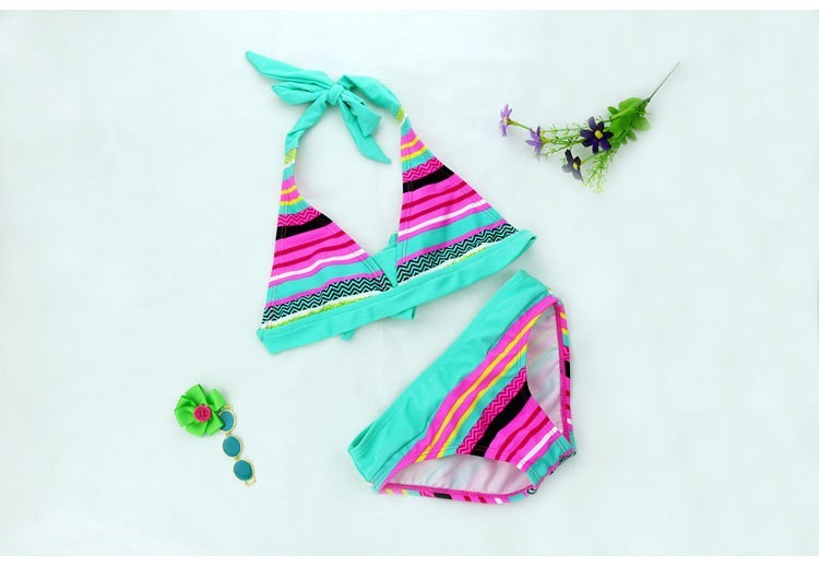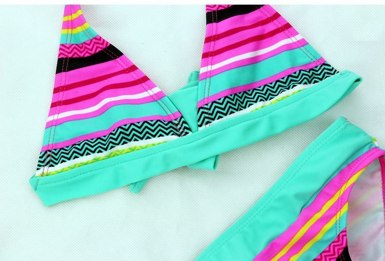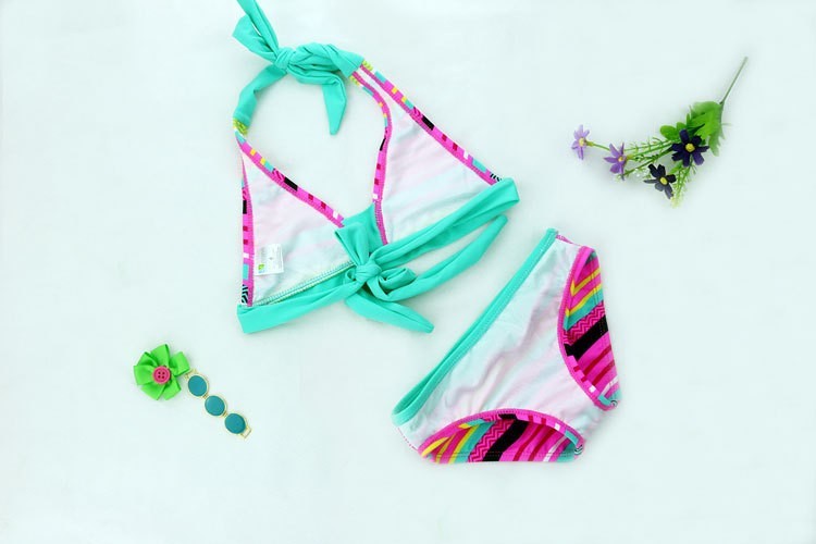 Beautiful two-piece swimsuit with an interesting pattern is just perfect for every young lady.