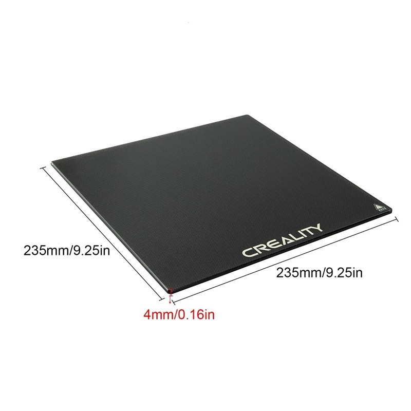 This high-quality glass print platform measuring 235 x 235 x 4 mm is the ideal solution for users who demand high precision, long durability, and reliable adhesion of the model during printing. Thanks to the combination of borosilicate glass and carbide composite surface, the plate offers a very flat base, quick restoration of flatness, and easy separation of the model after cooling. The surface structure ensures strong adhesion when hot, while after cooling, the model **releases within one minute**, without the need for tools and without the risk of damaging the print or the print bed. The plate is suitable for both standard filaments and more complex shapes that require better adhesion. It is fully compatible with Creality Ender 3, Ender 3 Pro, Ender 3 V2, Ender 5, Ender 5 Pro, CR20 printers and other models of the same format.