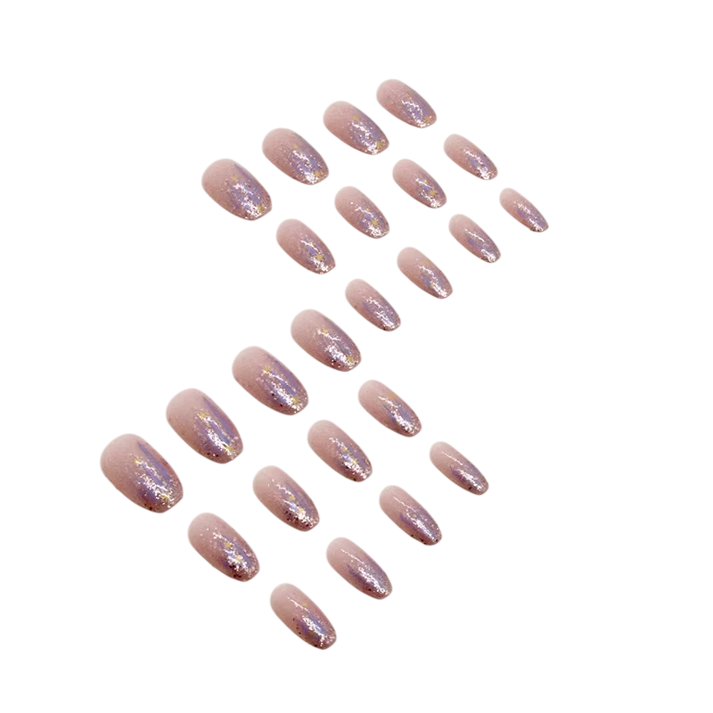 This collection of artificial nails is designed for anyone who wants to quickly achieve a striking and festive appearance without the need for a salon visit. The glittery surface adds a luxurious effect to your manicure, making it perfect for parties, celebrations, and special occasions. The coffin shape is among the most popular modern styles, and combined with the medium length, it looks elegant while remaining comfortable for everyday wear. The acrylic material ensures a realistic appearance and a pleasant feel on the nails. With a wide range of sizes available, it's easy to find the ideal option for each finger.