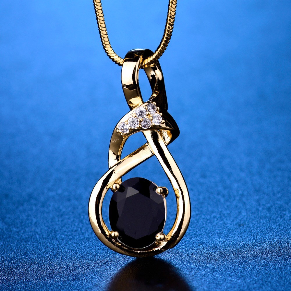 Women's necklace with a zircon stone serves as a beautiful accessory for a woman's everyday outfit.