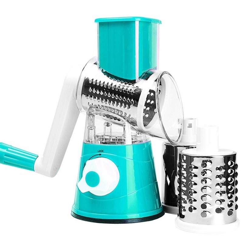 The grater with a crank is manually operated. The package includes three easily replaceable types of blades - fine grating, coarse grating, slicing. The grater with a crank will be your favourite piece in the kitchen.