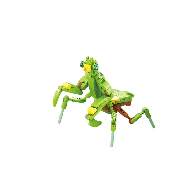 The assembled mantis model can be displayed on a shelf, desk, or among other insect series construction sets. With its intricate limbs, the model appears striking and captivates with its overall shape and colour combination. Assembly takes a reasonable amount of time, offering a pleasant creative activity suitable for moments of relaxation. The mantis is easily recognisable due to its shape and can thus complement a collection of other insect models with a unique and eye-catching element. Additionally, the colour scheme of the model gives the result a fresh and lively appearance, making it suitable for children's rooms or work corners.