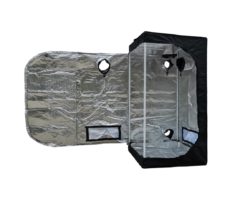 This tent is made for home use. The materials are Oxford fabric and Mylar film. It features double zippers that prevent light leakage. It also includes openings for placing filters and fans. Inside the tent, you can grow fruit, vegetables, herbs, and houseplants. The metal frame is sturdy and can support up to 100 kg.