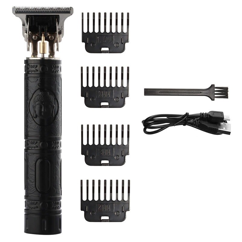 Contents of the package: 1x clipper, 1x USB charging cable, 4x attachment, 1x cleaning brush
