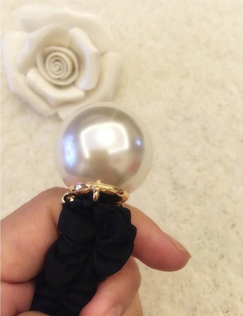 The tie is adorned with a large pearl that adds flair to your hairstyle.