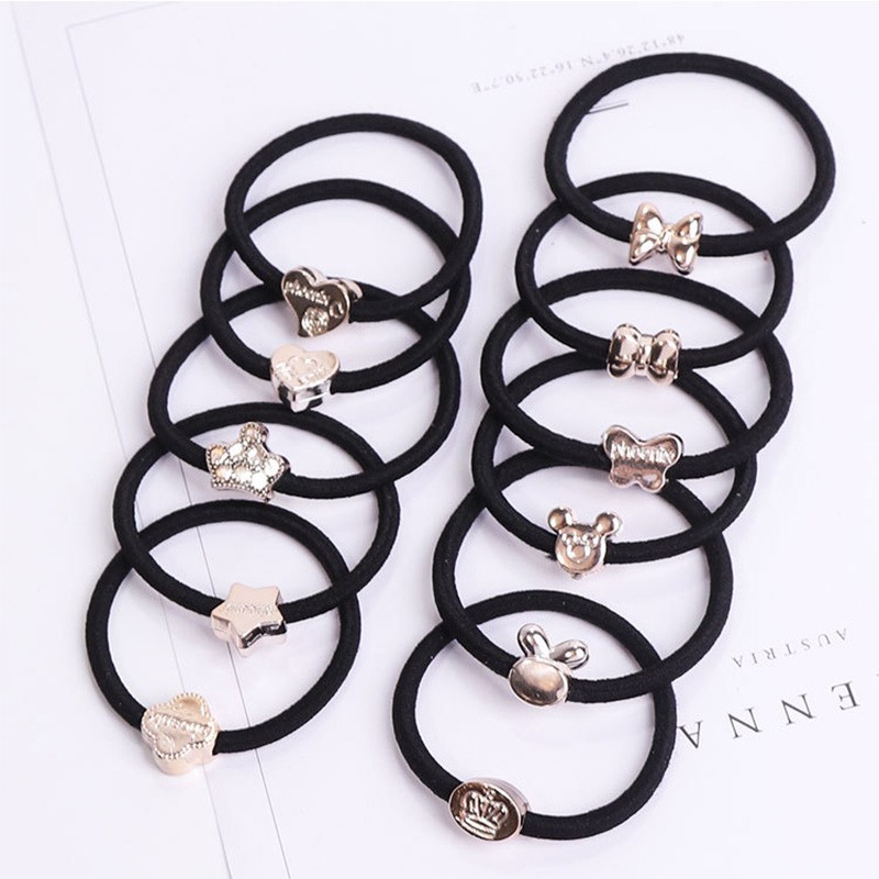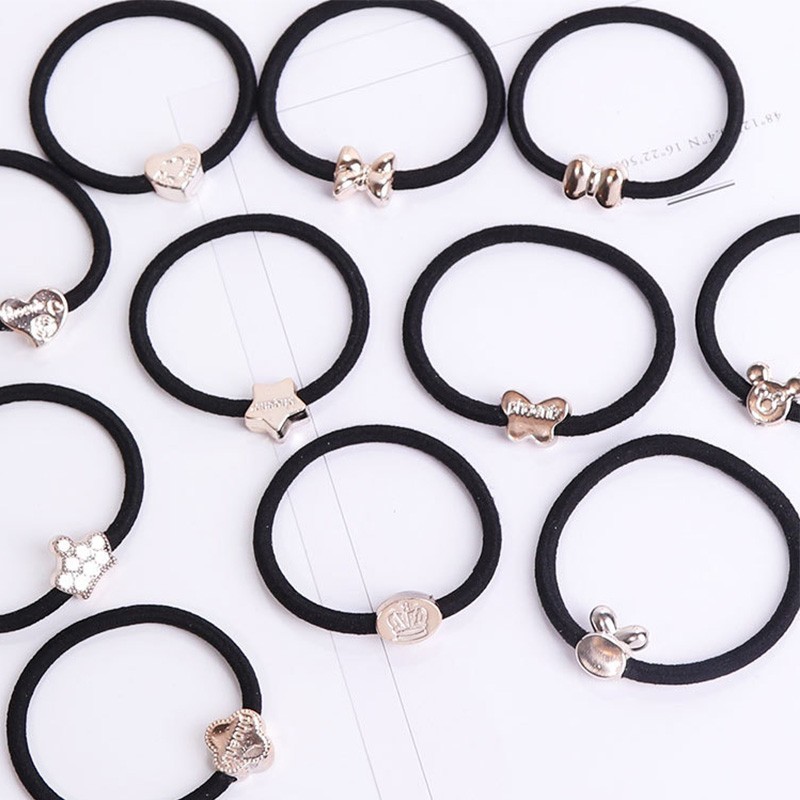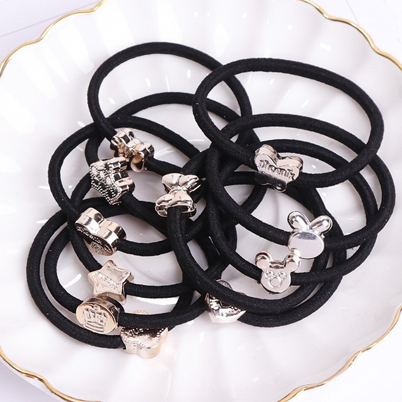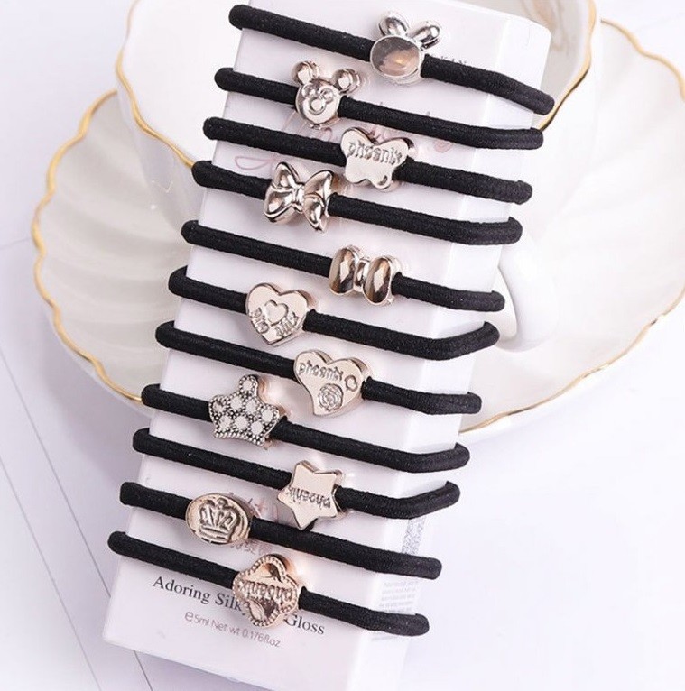 Hair Ties with Silver Decorations - 10 pcs