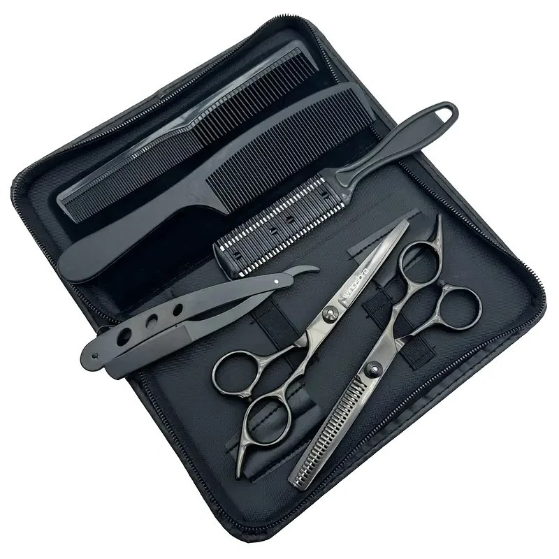 This professional hairdressing tools set is ideal for anyone who wants to have full control over their hair styling. It includes high-quality cutting and thinning scissors that ensure a smooth cut without snagging. Thanks to meticulous craftsmanship, the scissors are suitable for daily use at home or in a hair salon. Ergonomic handles provide comfort during extended use and contribute to better results. The set is universal and suitable for women, men, and children.