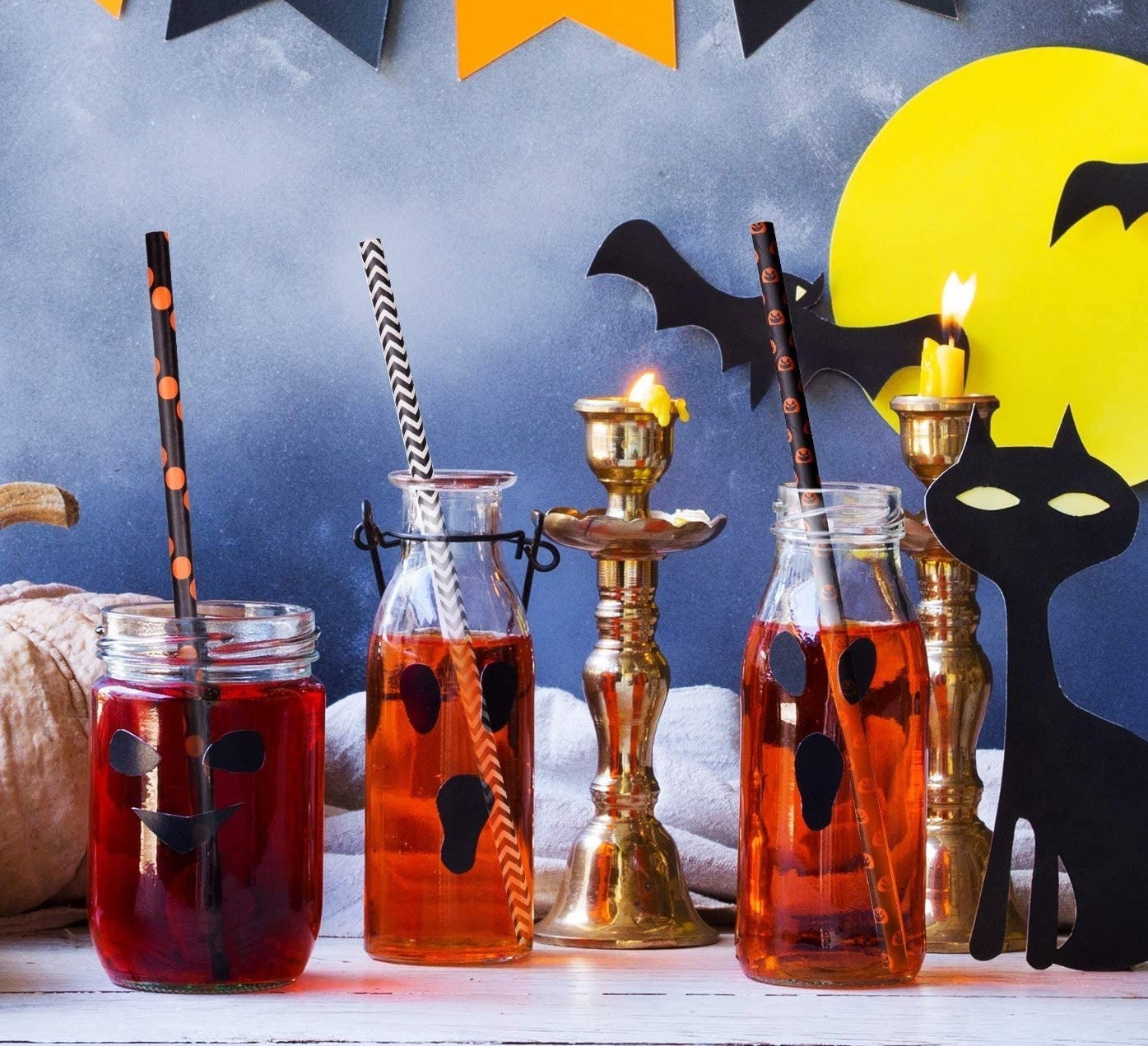 Ideal for celebrating Halloween. Original straw designs that will enhance your party. The straws are disposable, so you don't have to worry about any additional tableware.