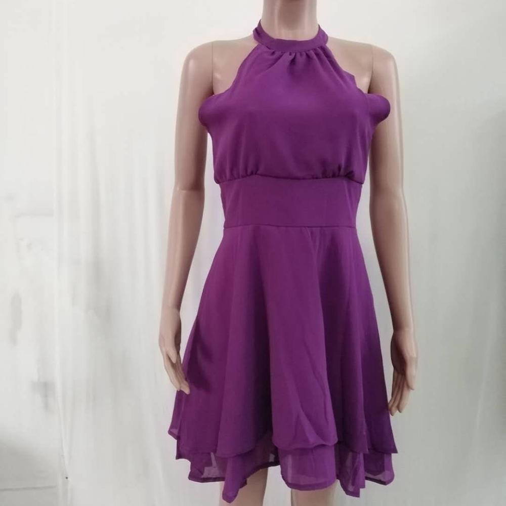 Elegant women's halter neck evening dress.