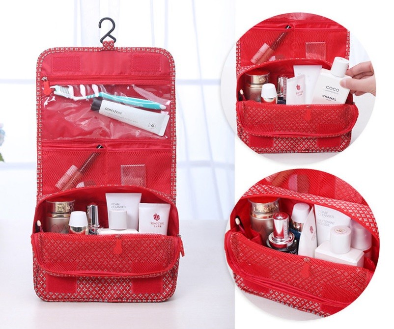 The hanging toiletry bag with a hook is very practical for holidays and weekend trips.