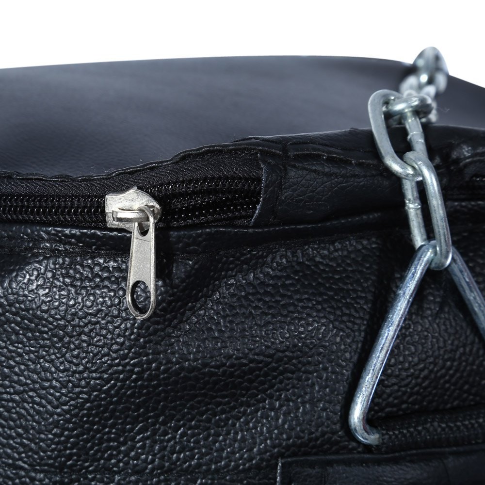 The bag is attached using a chain, has a zip at the top for easy filling, and can hold up to 25 kg of filling!