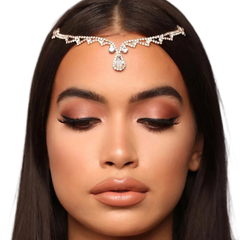 The design is crafted to ensure that the accessory naturally follows the shape of the head. Universal size allows for comfortable adjustment to various head circumferences, ensuring stability while wearing. The chain gently rests on the forehead, creating a subtle yet striking decorative element. Lightweight construction ensures comfort even during extended wear without uncomfortable pressure.