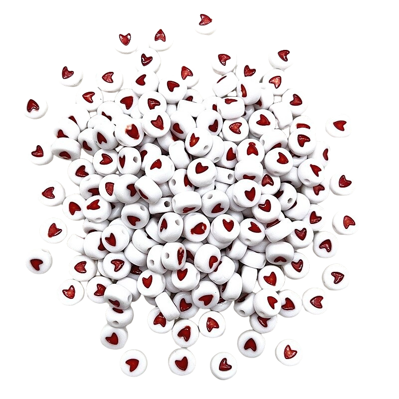 This set contains 100 beads, each with a printed heart. They are easy to use - simply thread them onto a string or cord. Start threading today!