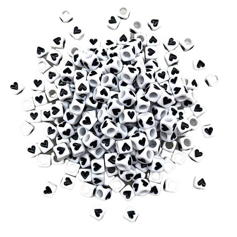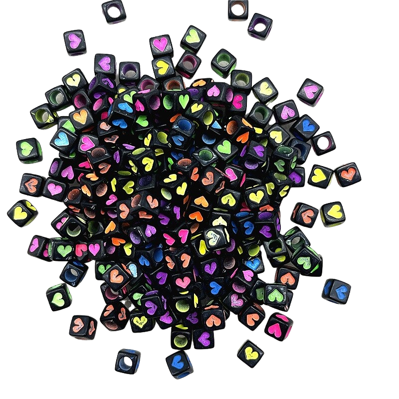 Do you want to create your own jewellery? Check out the heart printed beads for threading 100 pcs! They have dimensions of 6 x 6 x 6 mm, making them ideal for bracelets and pendants. So be creative and start threading today!