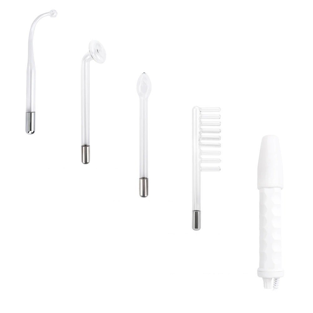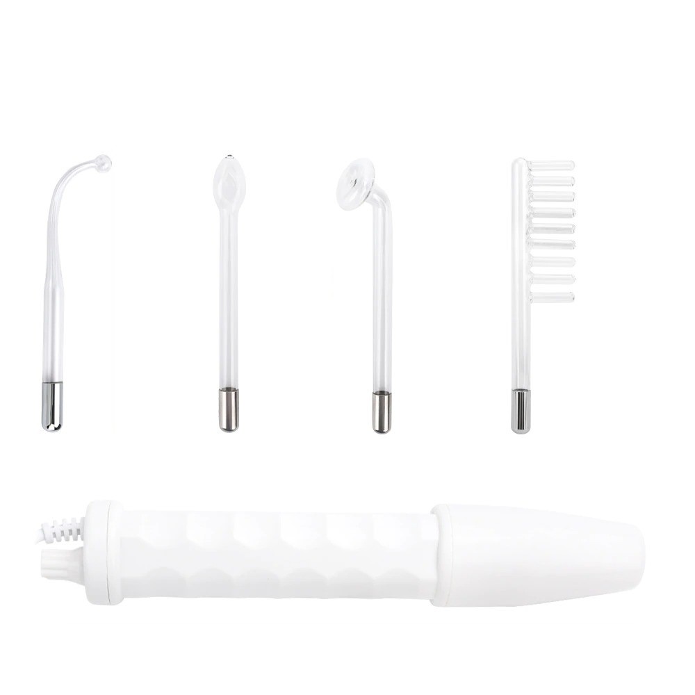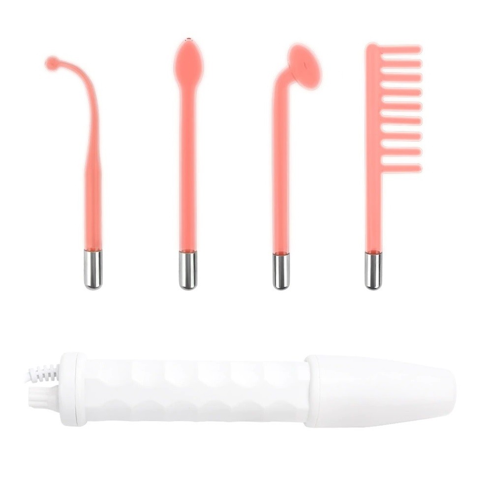 High frequency device with four glass electrodes. Used for healing or alleviating acne-prone skin. Thanks to the high-frequency current, it accelerates blood circulation, reduces wrinkles, tightens the skin and prevents hair loss.