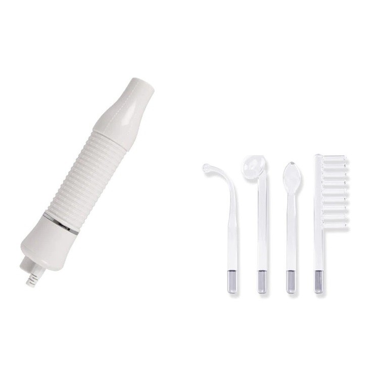 If you have problematic skin and skin prone to acne, this high frequency device may solve your issues. It includes electrodes filled with argon gas, which treats acne and has excellent antibacterial and healing effects. Electrotherapy helps to smooth acne by and improving circulation.